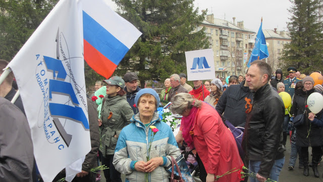 Служили молебен войне, надеюсь, что хоть не искренне. От имени администрации ЗАТО, от имени коллективов УЭХК и дочерних предприятий, от имени депутатов городской думы, от имени городских ветеранских организаций труда и войны. Уговаривали со сцены народ наслаждаться поверием о преимуществах социалистической системы в практике ведения войн, особо подчёркивая, что война и победа - отечественные и благодаря ей (социалистической системе), и что никаких у нас союзников, никакой Второй мировой на Земле как бы даже и не было, разгромили врага в одиночку. При том нечаянно пукнулось байкой, придуманной небезызвестной Ниной Андреевой в 1989 году, идеологом шайки перестроечных сталинистов, но вложенной ею в уста антисталиниста Черчилля, о якобы восторгах последнего по поводу величия личности Сталина (который, естественно, ничего подобного не произносил): "Сталин принял Россию с сохой, а оставил с атомной бомбой", проговорившись таким образом, что победа всё-таки не одна наша. А ещё выражали уверенность в небывалой со времён СССР крепости современной российской государственности, в мощи российского оружия и народного единства, которые дадут сокрушительный отпор любому агрессору. Но отчего-то звали собравшихся к ещё большему сплочению в сложной военно-политической обстановке в сегодняшнем неспокойном  мире, предлагая брать примеры патриотизма с павших фронтовиков и тружеников тыла. В присутствии тысяч горожан, кому эта болтовня о патриотизме, очевидно, по душе. Никакой другой повестки для контролируемой  узурпатором части  населения чекистский режим, принявший накануне коронацию своего бессменного ставленника, естественно, предложить и не мог.
